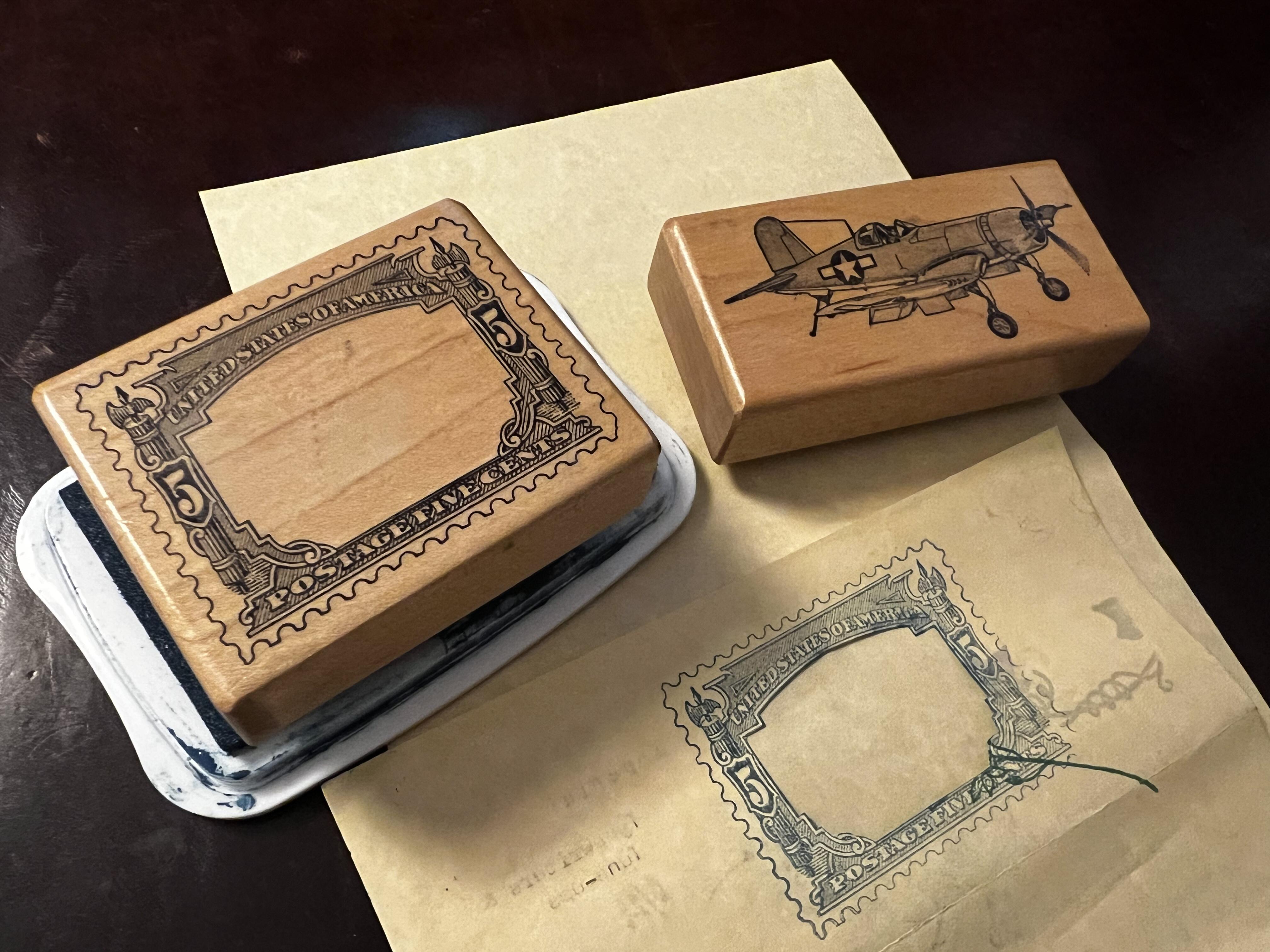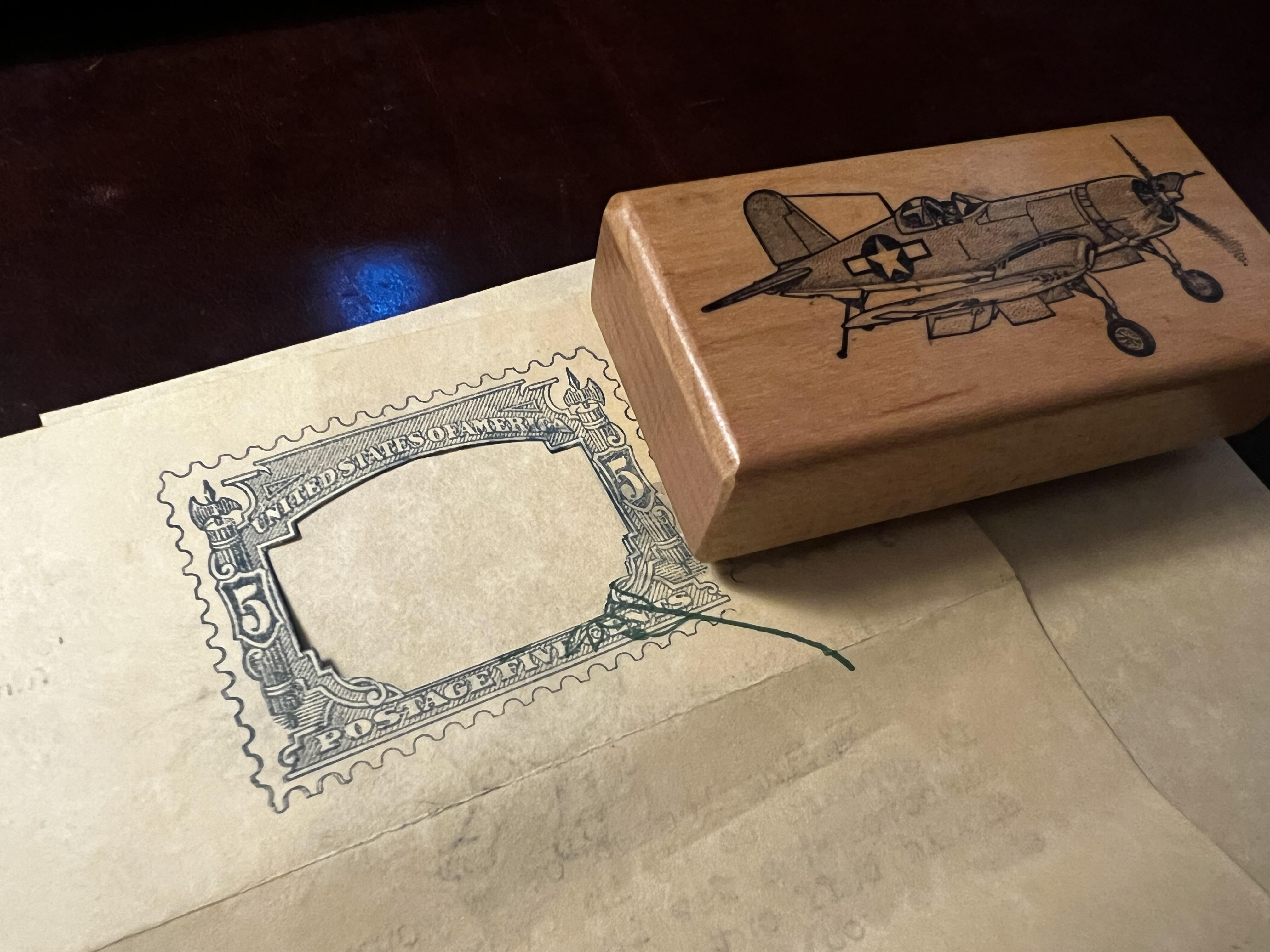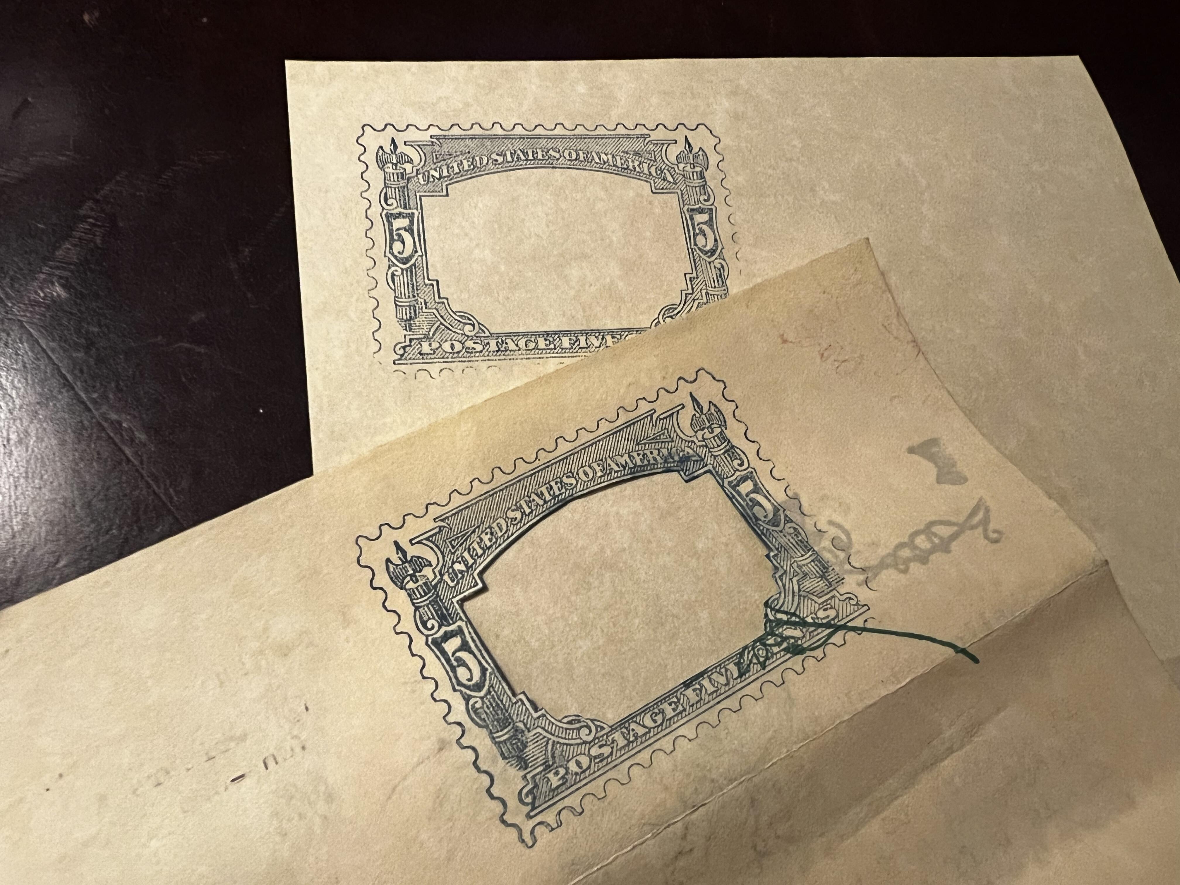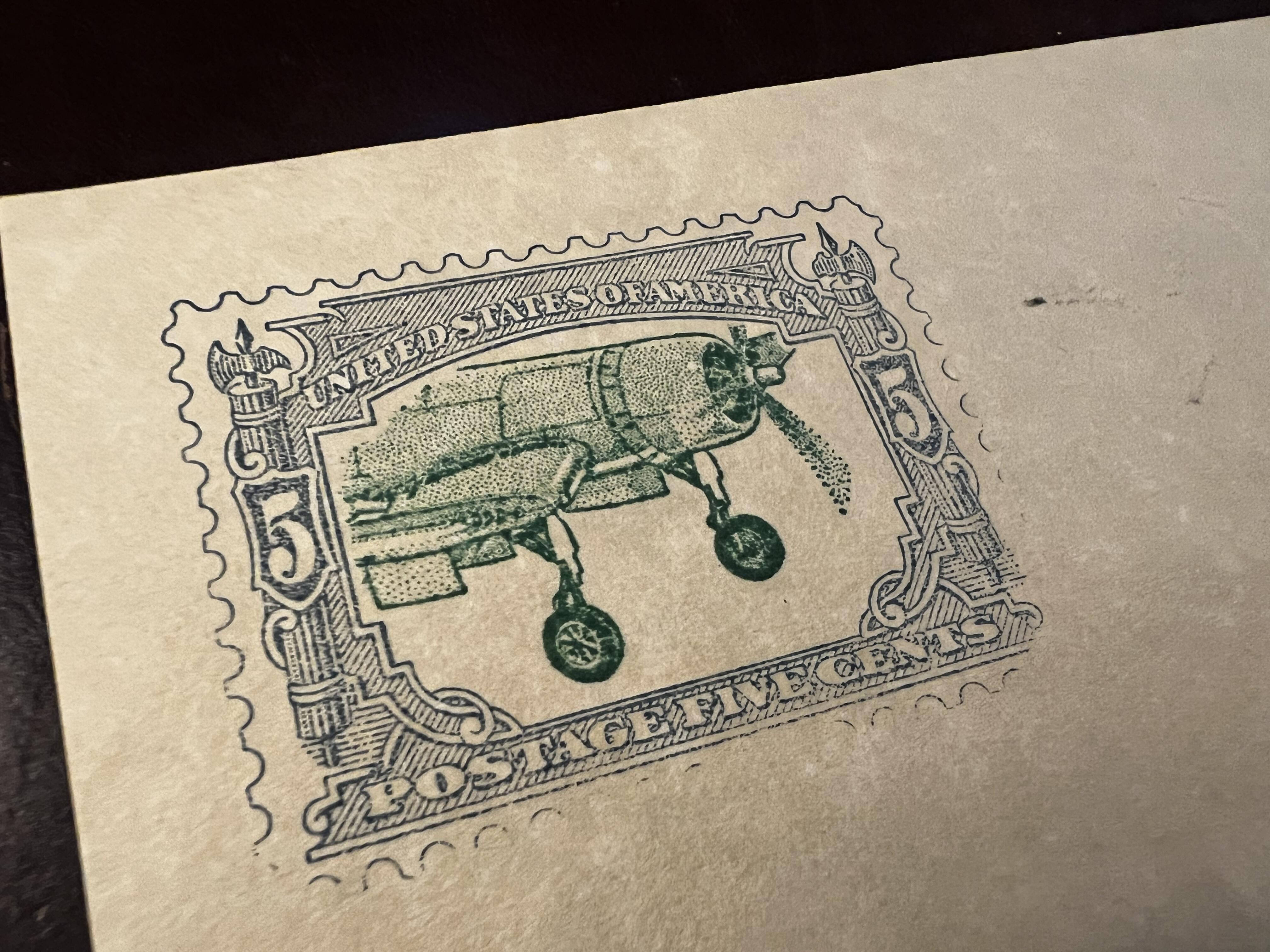 A few years back I had the opportunity to visit the postal museum in DC. It was a real treat, and I'd recommend that anyone in the area check it out. One of the attractions that really caught my eye was the exhibit for the flying Jenny, a quickly-rectified mis-print of the Curtiss Jenny on the 24¢ stamp which would go on to live in infamy. While I myself am only casually interested in philately, the presentation caught my eye, the two colors were distinctive (unlike the current generation of many-colored stamps) and they looked familiar. In fact, I recalled having a similarly framed "stamp-border" with a cutout in the center. When I got home I played around with using a shield and the stamp with a border and empty center to create some multi-color stamps.