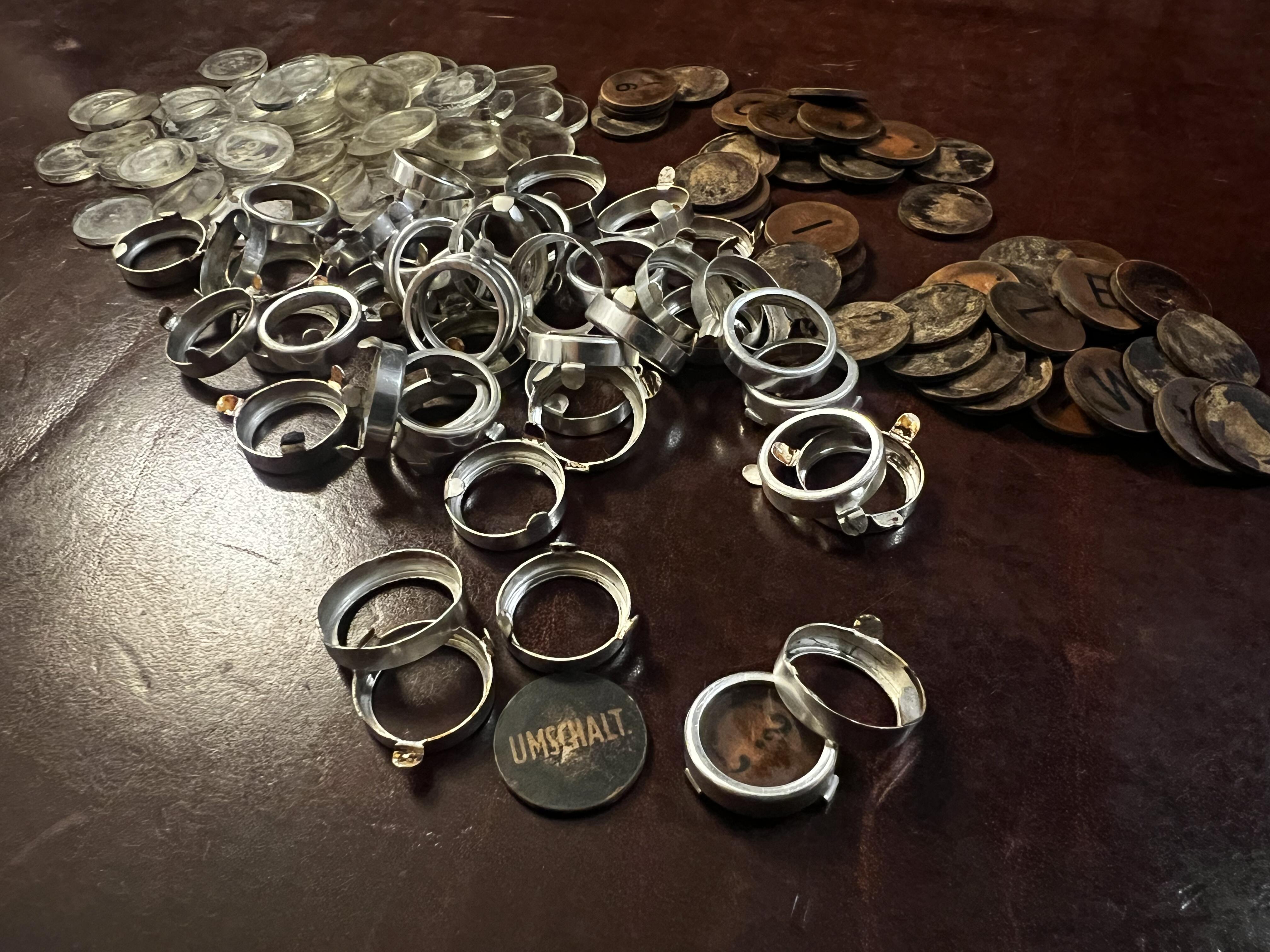Despite using a pair of nice keyring pliers and taking their time, many of the keyrings were damaged. Many of the Erika machines and other contemporaries appear to use very thin keyrings, which have small tabs that bend under the key itself and are prone to work hardening. Based on this they appear to be semi-consumable parts. After all, back in the day when these parts were still being manufactured and often re-used across makers (at least in Europe) this allowed them to be quite cheap.